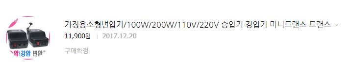 참고로 변압기 필요, 변압기는 아래제품을 샀다.