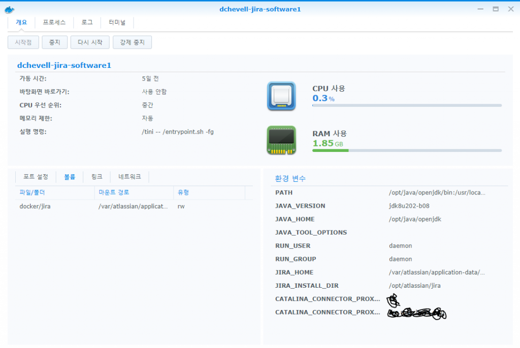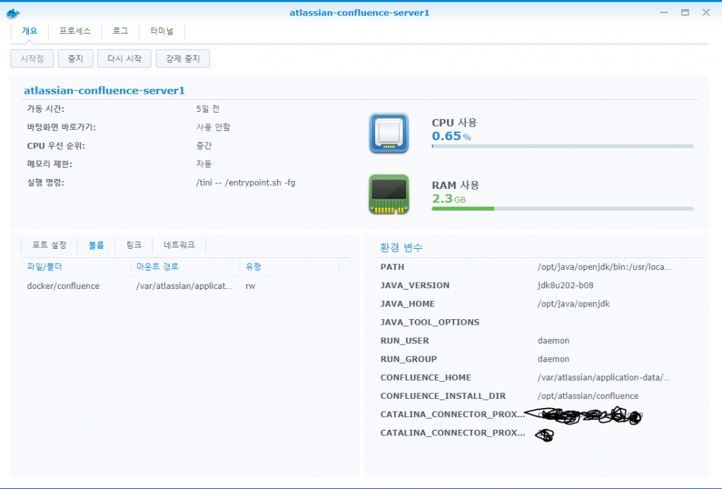 근데 두개를 합치면 메모리만 4기가를 넘게 차지한다… ㄷㄷㄷ 정말 시놀로지가 터질것처럼 느려진다….