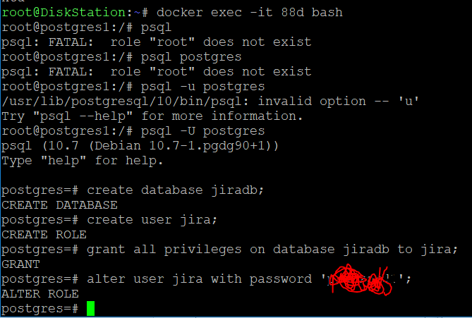 이제 postgres에 jira를 위한 적당한 데이터베이스를 생성해 줘야한다….