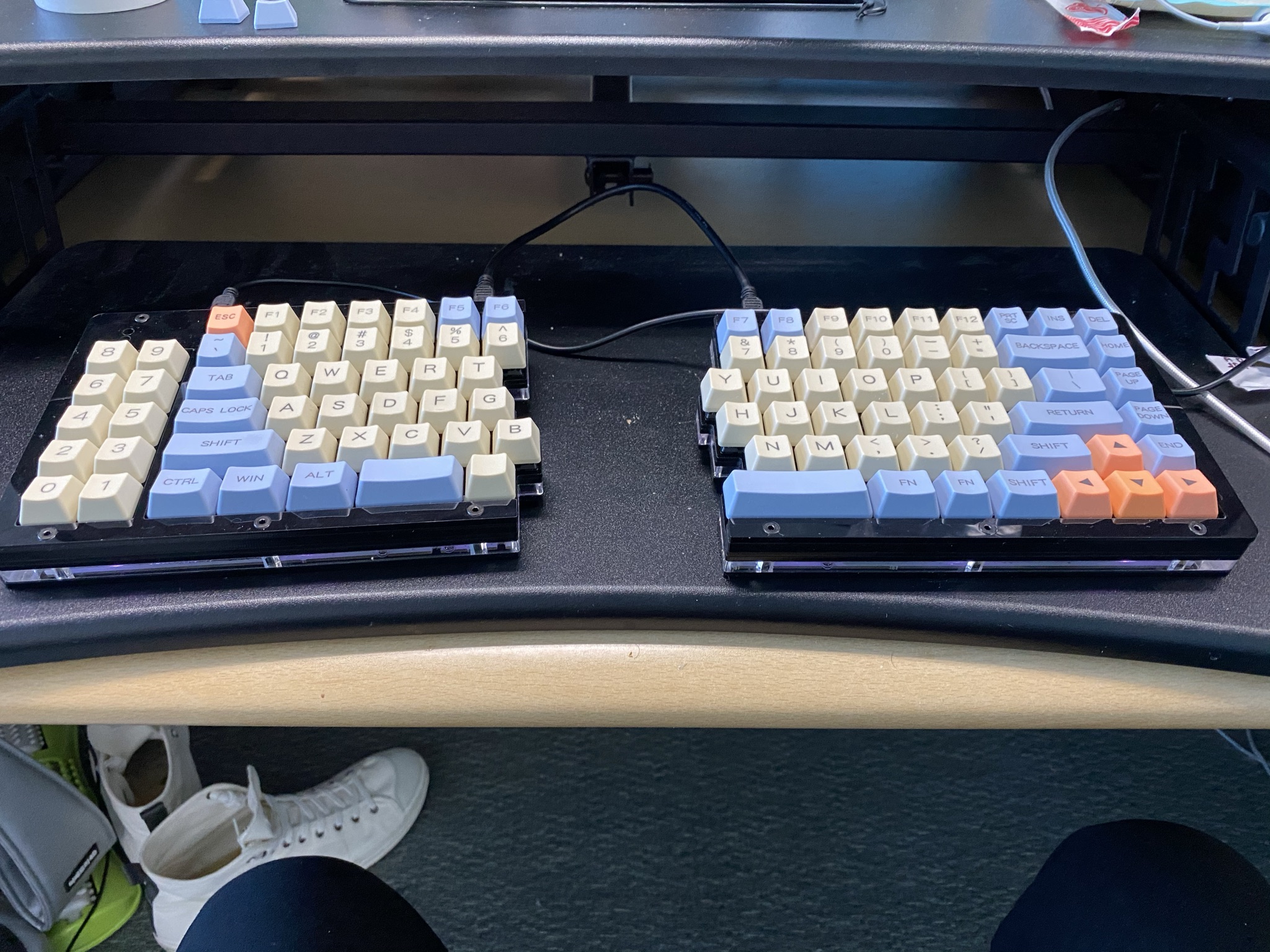 결국 저렇게 키캡을 다 이식하고 난 후, (참고로 전에 샀던거에 split 키보드용 키캡을 따로 또 주문했다)