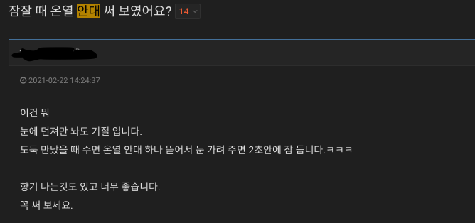 인터넷을 하다가, 발열안대를 하면 X꿀잠을 잔다는 이야기를 보고 무작정 구매했다. 난 추진력 넘치는 남자니까
