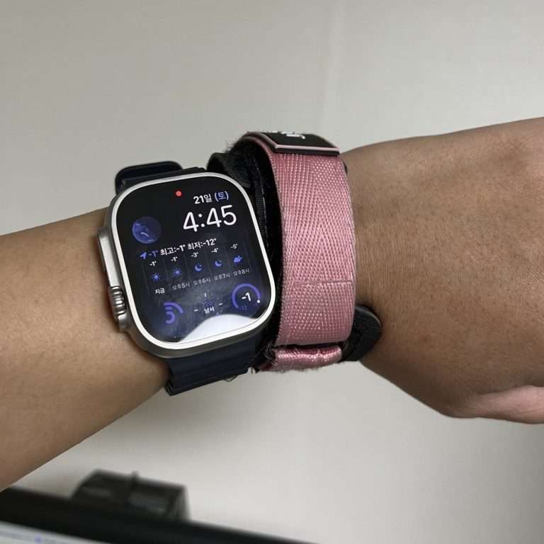 오션밴드 – 난 운동할때, 샤워시에도 애플워치를 차고 있는 편이라서 오션밴드를 선택했는데, 간혹 살이 줄의 울퉁불퉁함 때문에 자국이 남기도 한다. 모양은 맘에 드는데, 아쉬운부분이다. 7 쓸때 사용하던 실리콘 줄을 사용해야하나 싶긴하다. 특히 아쉬운점은 오션밴드는 고정을 위해서 티타늄(?) 줄걸이가 있는데 이 부분이 맥북에 계속 닿는다. 그래서 내 맥북 프로 16은 기스가 생겼고, 이제 방출하기 힘든 몸이 되었다…..ㅠㅠ
